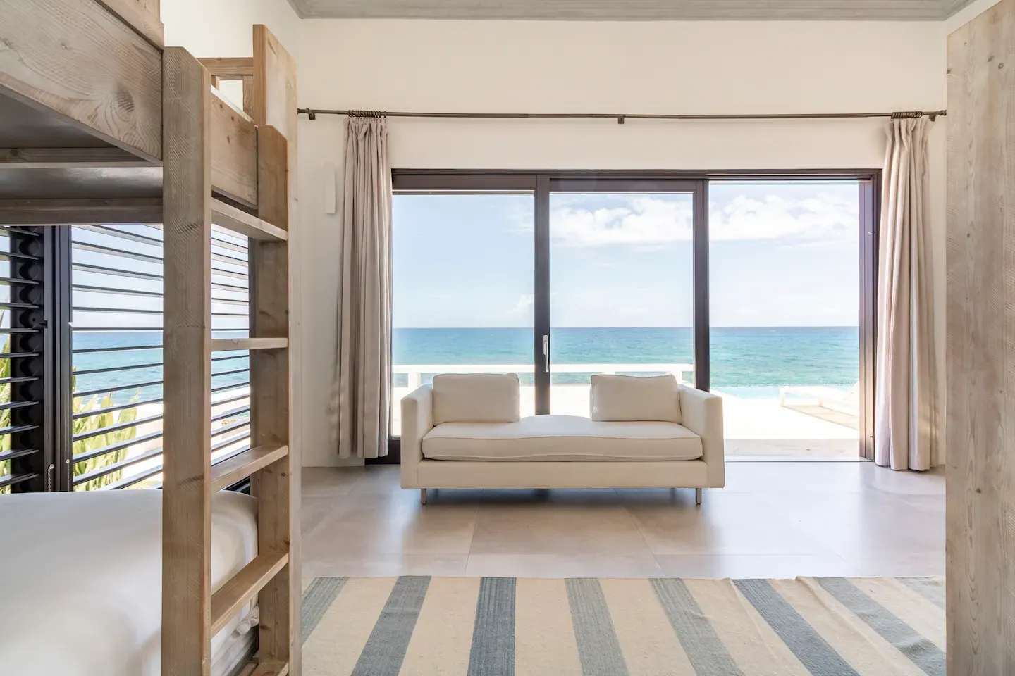 The main villa has 2 master suites with King bed, W-Hotel Mattress, ceiling fans, A/C, indoor/outdoor bathroom, soaking tubs, and patio. A kid's room comes with 2 bunk beds, indoor bathroom with Jacuzzi tub, open-air shower, and the fastest route to the pool! A fourth "bonus" room with a sofa bed, ceiling fan, and adjoining bathroom allows you to expand your party for that close friend or relative you simply cannot leave behind.